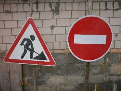 Дорожные знаки: - "Кирпич", диаметр 700 мм = 1 шт.; - Ремонтные работы, сторона треугольника 850 мм = 1 шт.