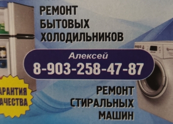 Ремонт бытовых холодильников и стиральных машин. Выезд на дом.Гарантия качества. Алексей тел. 8-903-258-47-87