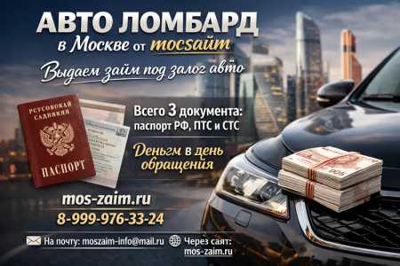 АВТО ЛОМБАРД в Москве от мосзайм Выдаем займ под залог авто Всего 3 документа: паспорт РФ, ПТС и СТС Деньги в день...