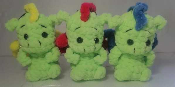 Дракончики 9-10см,из плюшевой пряжи, в наличии ассорти с крылышками 15шт Пишите дополнительно отправлю информацию и приложу...