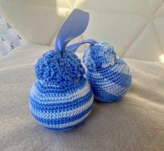Елочный шар ручной работы. Диаметр 5 см. Основа - шар из АБС-пластика, обвязан вручную и с любовью пряжей Ирис.