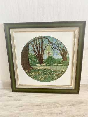 Вышивка крестом, лентами, бисером. В рамке со стеклом.