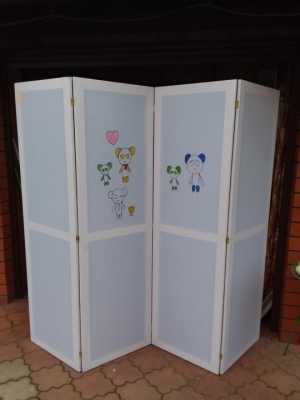 Четырёх секционная ширма, ширина одной секции 50 см, высота 171см. Цвет белый, каркас ДСП.