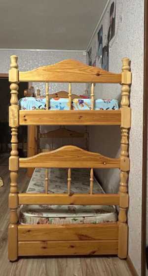 Двухярусная детская кровать из массива, размер спального места 90*190 Может легко трансформироваться в отдельные кровати.