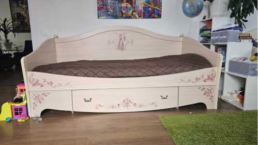 Продаю кровать домик,в использовании 2,5 года,на крыше есть сколы у одной рейки,на фото видно,имеется ящик выдвижной,так же...