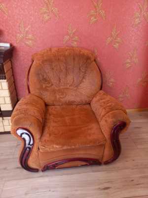 Два кресла б/у Цена за штуку! состояние на фото в тканях совсем не разбираюсь, но похоже на вельвет только самовывоз...