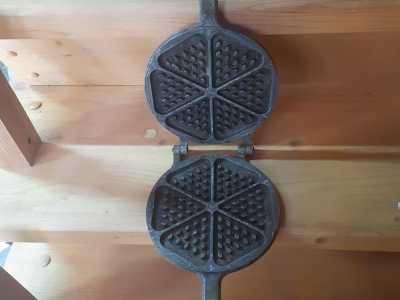 Сковородка очень тяжелая,ручки эбонит,на 6 печенюшек период СССР.Состояние на фото.