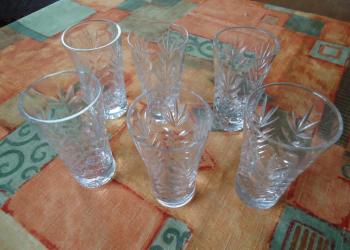 - бокал AVON : H - 12 см. D нижний -5 см./верхний - 8,5 см. V -255 мл. - 150 руб. - Две чайные пары : V -чашки 200 мл.