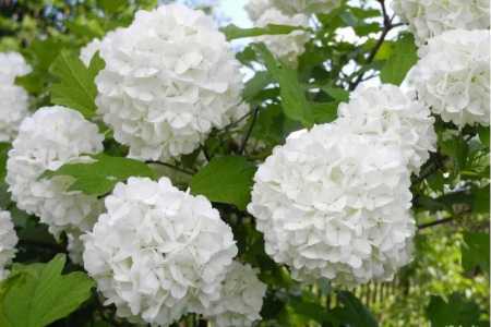 Фото куста вышлю по запросу. Сорт - Полярный медведь. Красивоцветущий лиственный кустарник с густой кроной 2-3 м высотой.