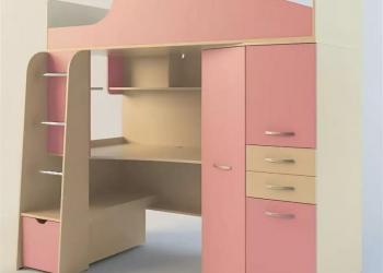 Детская кровать чердак с большим столом, очень вместительным шкафом, хорошей кроватью.