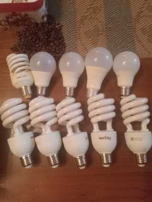 Светодиодные лампочки, в се рабочие, почти новые, и одна большая лампа, горит малиновым светом. Цена за всё.