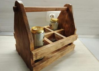 Переноска для пива на 6 бутылок(банок). Сосна. Обжиг. Акриловый лак. Сбоку открывалка для бутылок.