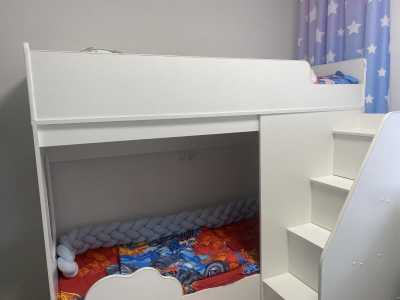 Продам кровать очень дёшево в связи с переездом. Хорошая двухярусная кровать -чердак в приличном состоянии.