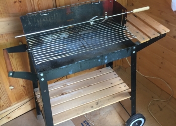 Мангал на колесиках, легко разбирается, решетка переставляется на разную высоту, есть шампур для курицы