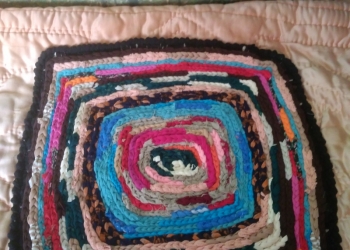 Коврик связан крючком в тамбурной технике, основа- мешковина. Размер 69х69 см.