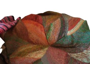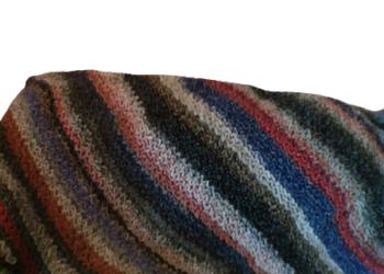 Связан крючком из шерстяной пряжи. Размер 30х30 см. Имеется подворот, благодаря чему коврик не сползает с табурета.