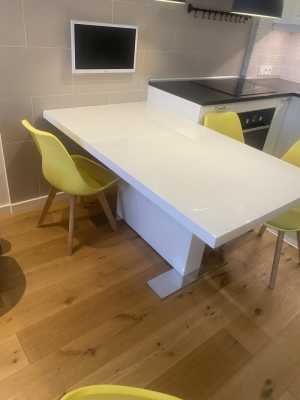 Кухонный стол IKEA в прекрасном состоянии 90 на 160 белый, раскрывается еще на +30 см, к столу идут 4 стульчика желтые...