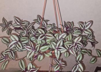 Традесканзия Зебрина серебристая - свисающий многолетник, очень быстро разрастается. Листочки овальные, крупные 5-7 см.