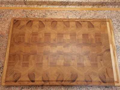 Разделочная торцевая доска сделана из масива дуба и ясеня