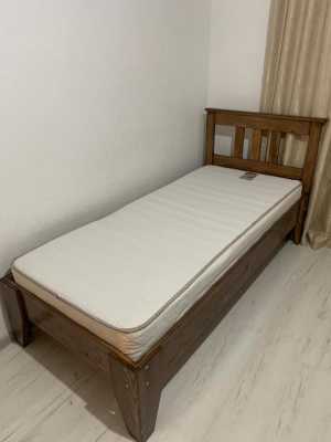 Кровать Икея из массива дерева, ширина 1,6 м, окрашенная, цвет - серый орех. С новым матрацем, в хорошем состоянии.