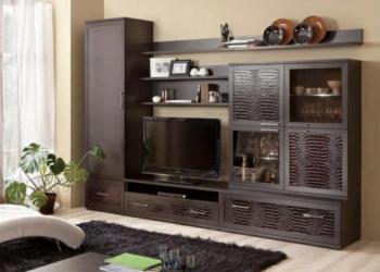Очень красивая гостиная, вместительная. Отлично вписывается в интерьер, стильная со вставками эко-кожи на дверях.