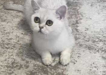 Продаю милую кошечку- британку , окраса белая шиншилла с голубыми глазами. В связи с переездом не можем взять ее с собой .