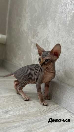 Продается очаровательная кошечка канадского сфинкса от клубных родителей 16.08 17 г рождения . Окрас сил поинт .