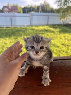 котенок девочка. Мама обычная кошка, а папа чистокровный шотландский блю поинт. Приучена к лртку и обработана.