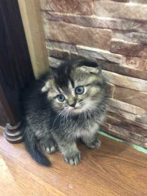 Шотландский котенок, девочка, родилась 10августа. Ест все. К лотку приучена.