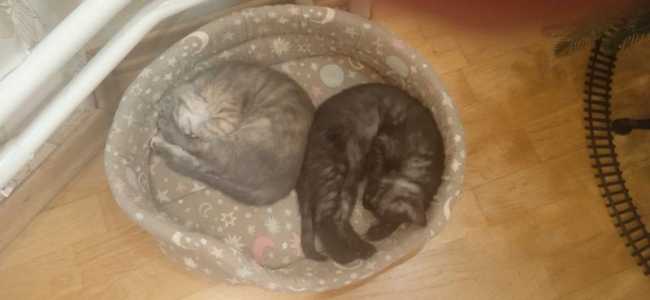 Котята мамы-крысоловки. Исполнилось пять месяцев. К лотку приучены. Зимой им будет тяжело.