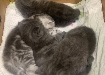 Котятам два месяца, в роду присутствует сиамская порода, все с голубыми глазами, две девочки и один мальчик, мальчик...