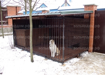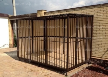 Размер данного вольера 2х2м.Высота 2м. Каркас проф.труба 40х25.Решетка квадрат 10мм. Крыша поликорбанат.