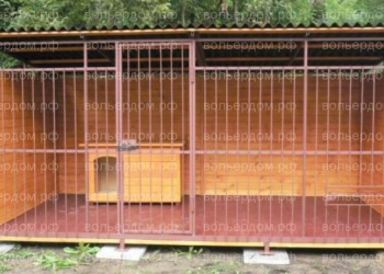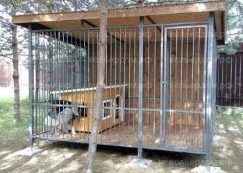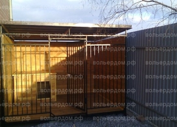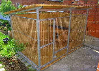 Размер данного вольера 2х4м.Высота 2м. Каркас брус 100х100.Решетка проф.труба 15х15. Крыша проф.лист.
