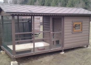 Размер данного вольера 2х2м.Высота 2м. Каркас проф.труба 40х25.Обшит блок-хаус. Крыша металочерепица.