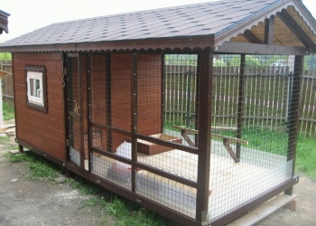 Размер данного вольера 2х6м.Высота 2м. Вольер для 3 собак. Каркас проф.труба 40х25. Обшит строг.доска 20х100. Крыша проф.