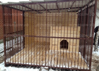 Размер данного вольера 2х2м.Высота 2м. Каркас проф.труба 40х25.Крыша проф.лист.Решетка проф.труба 15х15.Обшит фанера.