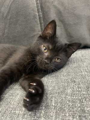 Котятам месяц, игривые, ручные. 2 девочки(чёрная и персиковач) 1 мальчик серый. Ждут хозяев. Кушают уже сами.