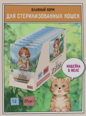 Влажный корм для кошек Zilli В упаковке 11 штук, не вскрыты (1 был использован на пробу кошке, не понравилось, поэтому...